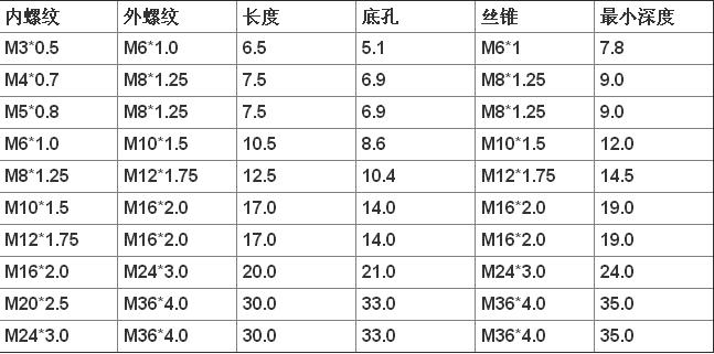 ? ? ? ? ?常用的公制規(guī)格: